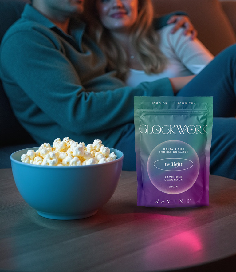 As the sun gracefully dips below the horizon and the stars commence their mesmerizing dance, deVINE's Clockwork Twilight Indica gummies take center stage. Infused with the perfect, soothing combination of Delta-9 THC and CBN, these delightful and delectable lavender lemonade flavored gummies are your golden ticket to a tranquil evening unwind.